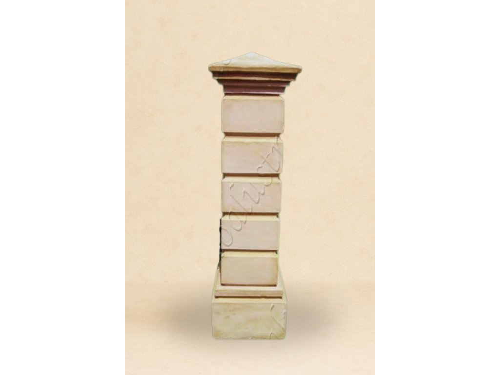 Hladká patka, sloup kvádrový, střecha římsová